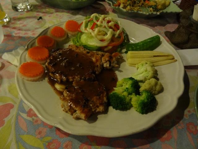 ちょうど到着した日の夜がバイキングだったらしく外で用意していました。